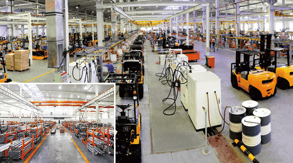 建立了國內獨立的叉車研發(fā)及生產(chǎn)基地 擁有3條叉車總裝線、6條部套裝配線、2條油漆涂裝線和焊接機器人